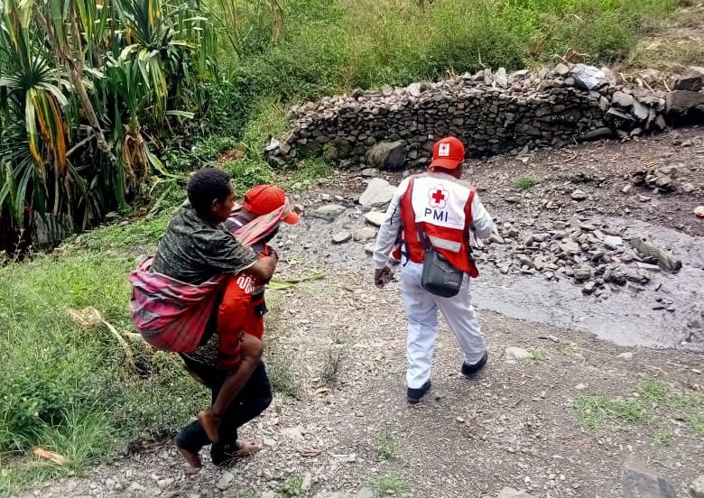 Merespon kejadian tersebut, Pengurus PMI Kabupaten Puncak Jaya menerjunkan sebanyak 25 anggota relawannya, turut membantu mengevakuasi warga yang terkena anak