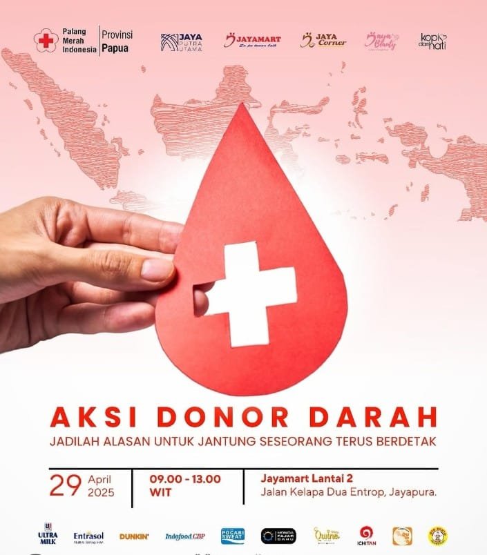 | Sabtu, 5 April 2025 | 09:00 WIT | 11:00 WIT | UDD PMI Provinsi Papua | Gereja Diaspora Waena | 50 orang |