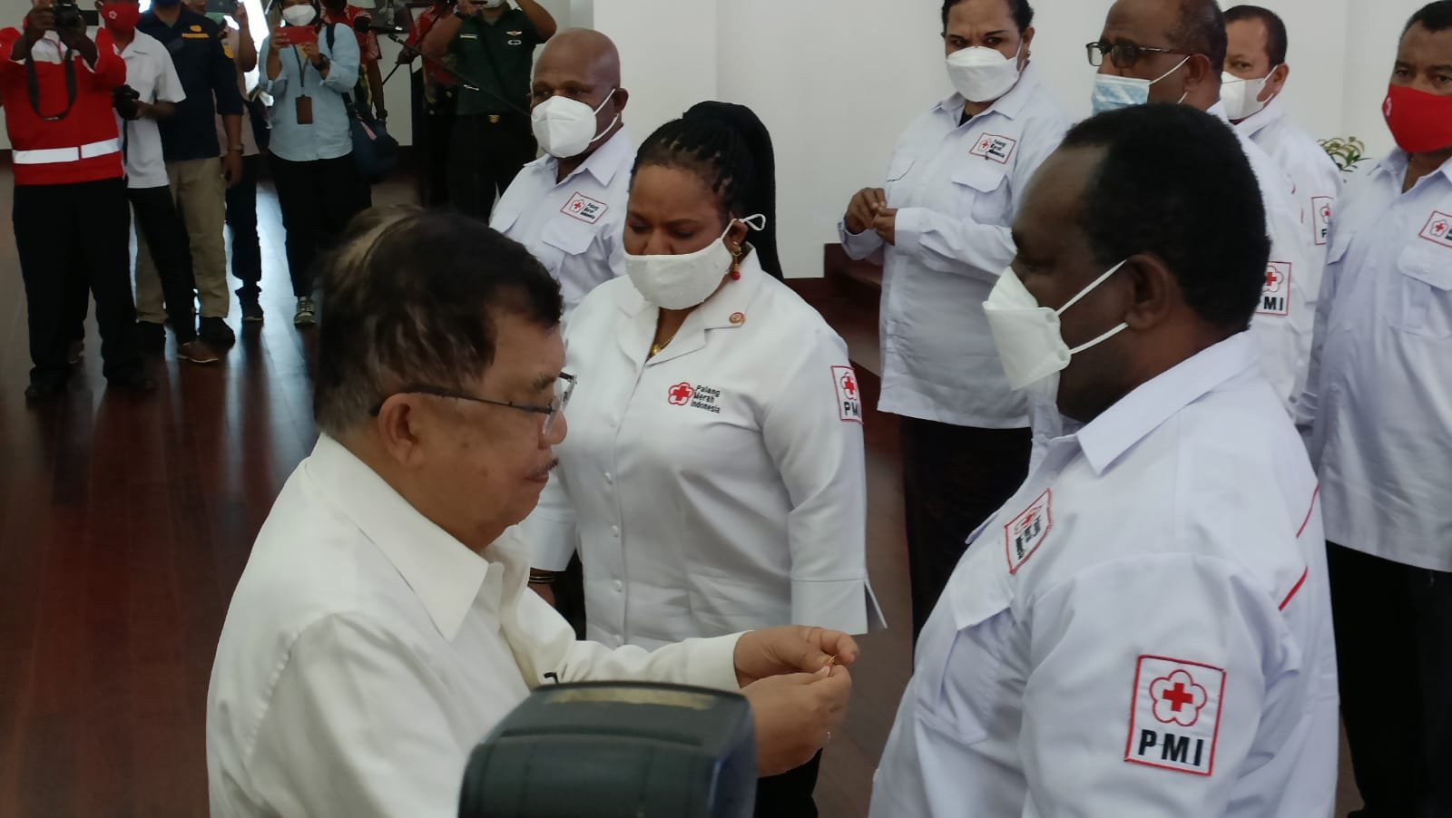 KOTA JAYAPURA,- Ketua Umum PMI, HM. Jusuf Kalla didampingi Sekretaris Jendral, Sudirman Said, Rabu (29/06/2022) melantik Dewan Kehormatan dan Pengurus PMI Provinsi Papua masa bakti 2022-2027 yang digelar di Gedung Negara DOK V Kota Jayapura. Dalam sambutannya, JK mengucapkan terima kasih kepada Pemerintah Provinsi Papua yang telah mendukung kerja PMI.