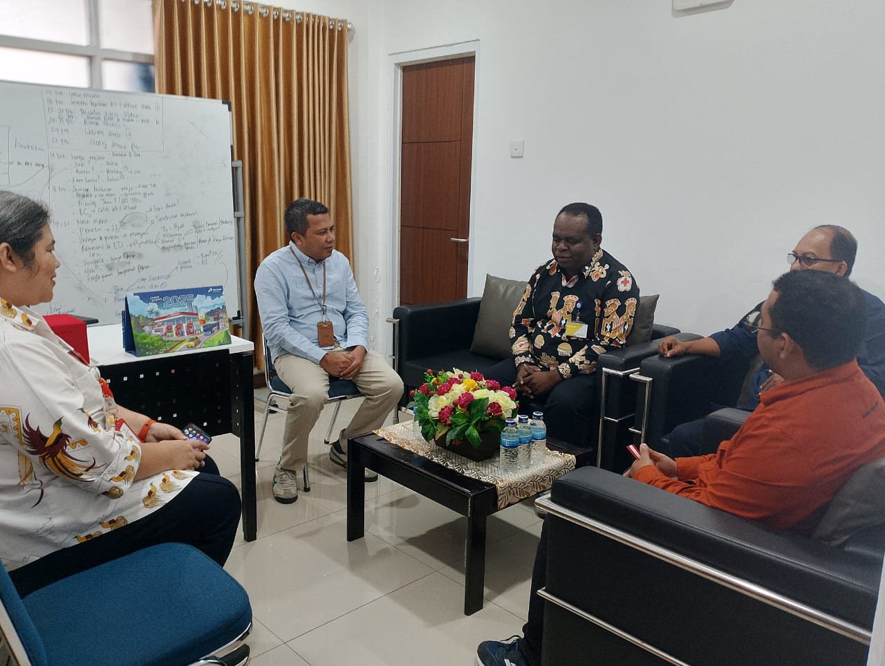 KOTA JAYAPURA,- Ketua PMI Provinsi Papua, Zakius Degei, ST berserta Sekretaris, dr. Raflus Doranggi, MH, Kepala Markas, Austikarini Ambarwati dan dua stafnya, Kamis (27/03/2025) berkunjung ke Poliklinik PT Pertamina Jayapura. Kedatangan Pengurus beserta Staf Markas PMI Papua tersebut disambut Pimpinan Poliklinik PT Pertamina, dr. Arifin dan stafnya dr. Erik.