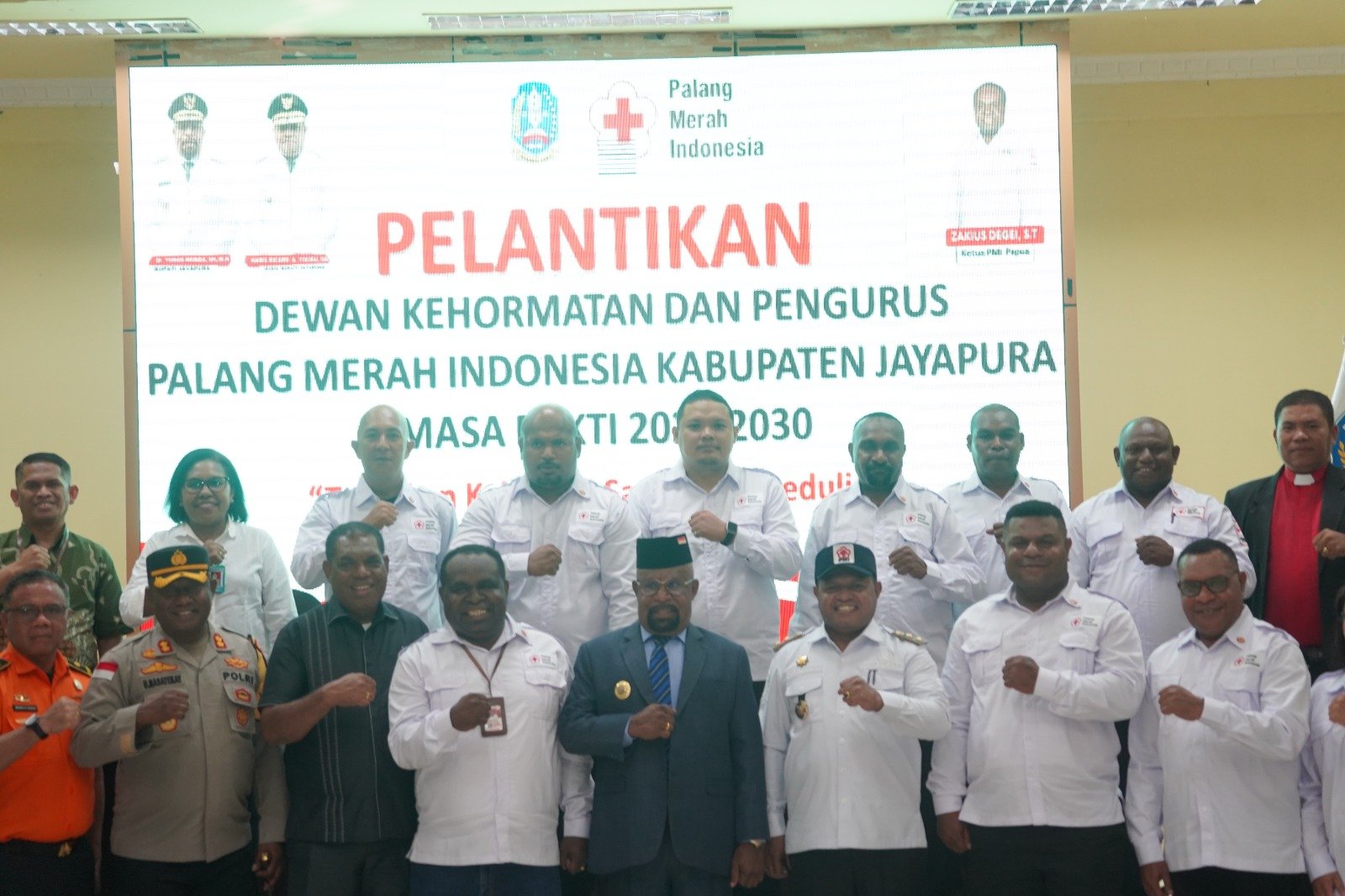 JAYAPURA.- Palang Merah Indonesia (PMI) Kabupaten Jayapura secara resmi memiliki kepengurusan baru. Hari ini, Rabu, 12 November 2025, bertempat di Aula Lantai 2 Kantor Bupati Jayapura, telah dilaksanakan pelantikan Dewan Kehormatan dan Pengurus PMI Kabupaten Jayapura masa bakti 2025-2030.